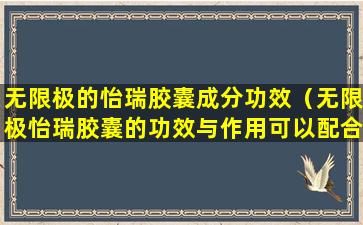 无限极(Infinitus)是一家中国的保健品公司,其产品包括多种健康食品和营养补充品。怡瑞胶囊是无限极的一款产品,主要成分包括多种植物提取物,旨在帮助调节身体机能,增强免疫力等。