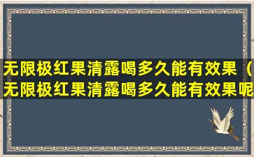 一般来说,任何健康产品或补充品的效果都需要一定的时间来体现,而且通常需要持续使用一段时间。对于无限极红果清露,如果其宣称的功效是基于科学研究并且适合您的健康需求,您可能需要连续饮用一段时间(比如几周到几个月)来观察是否有改善。