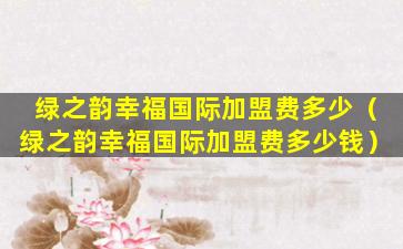 关于“绿之韵幸福国际”的加盟费用,由于我无法访问最新的数据,因此无法提供确切的数字。通常,加盟费用会根据品牌、地区、店铺规模等因素有所不同。建议您直接联系绿之韵幸福国际的官方渠道或授权代理商获取最准确的加盟费用信息。