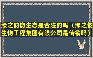 在中国,所有商业活动都必须遵守国家的法律法规。关于“绿之韵微生态”是否合法,需要根据其具体的业务内容和运营模式来判断。如果该企业或产品符合中国的相关法律法规,如工商注册、税务登记、产品质量标准等,那么它就是合法的。建议消费者在选择任何产品或服务时,都应该查验其合法性,包括但不限于查看企业的营业执照、相关资质证书、用户评价等,以确保自身权益不受侵害。同时,如果有疑问,可以咨询相关监管部门或法律专业人士。