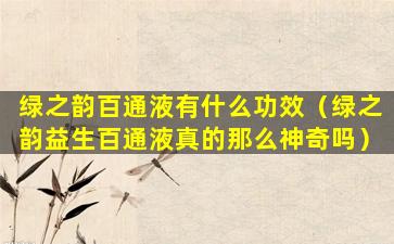 绿之韵百通液是一种中药制剂,其主要成分和功效通常会在产品说明书或者官方宣传资料中有所介绍。由于我无法访问最新的数据和具体的产品信息,我无法提供确切的关于“绿之韵百通液”的功效描述。