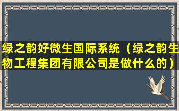 关于“绿之韵好微生国际系统”的具体信息,目前没有公开的详细资料。在了解任何组织或系统时,建议您通过官方渠道或可信的新闻来源获取信息,并注意核实其合法性和信誉。如果您有进一步的问题或需要帮助,请提供更多的上下文或详细信息,以便我能够提供更准确的回答。