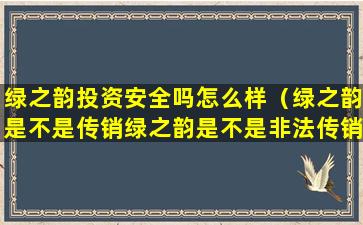 关于“绿之韵”投资的安全性,我无法提供具体的评价,因为这取决于多个因素,包括但不限于该投资项目的合法性、风险管理、市场状况、监管环境等。在中国,任何投资都应当遵循合法合规的原则,投资者应当通过正规渠道进行投资,并且要对投资项目进行充分的了解和风险评估。