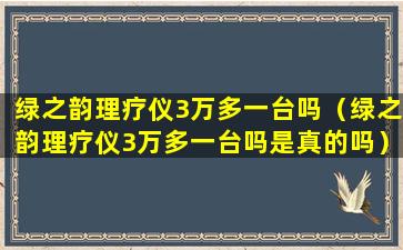 关于“绿之韵理疗仪”的价格,我无法提供确切的信息,因为这取决于多种因素,包括产品的型号、功能、销售渠道以及是否为正品等。如果有人声称“绿之韵理疗仪3万多一台”,这个价格可能指的是特定型号或者包含了某些特殊服务或配件的价格。