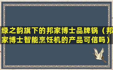 截至我的知识更新日期(2023年),我没有找到关于“绿之韵旗下的邦家博士品牌锅”的具体信息。这可能是因为该品牌或产品在市场上知名度不高,或者是一个新推出的品牌,或者是一个地区性的品牌,没有广泛的媒体报道或网络信息。