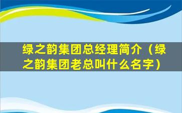 截至我所知的信息,绿之韵集团是一家在中国注册的公司,主要从事健康、美容和生物科技产品的研发、生产和销售。关于绿之韵集团总经理的具体信息,由于缺乏公开的详细资料,我无法提供确切的个人简介。