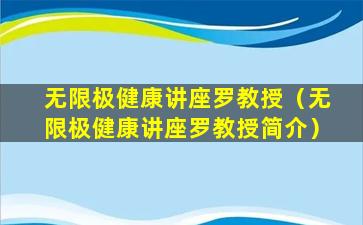 无限极是一家中国的直销公司,主要销售健康食品、个人护理品和家居用品。关于“无限极健康讲座罗教授”的简介,由于信息有限,无法提供具体的个人资料。通常,这类健康讲座可能会邀请医学、营养学或相关领域的专家来分享健康知识。