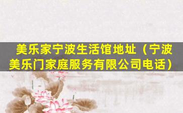 如果您需要查找美乐家在宁波的生活馆地址,建议您通过以下几种方式获取最新信息: