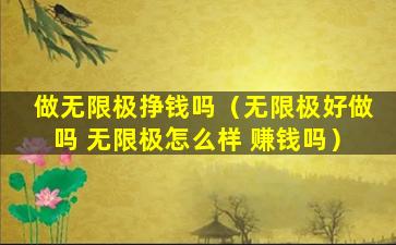 无限极是一家中国的直销公司,主要销售健康食品、个人护理品和家居用品等。关于“做无限极挣钱吗”的问题,这取决于多种因素,包括个人的销售能力、市场情况、团队管理能力以及对产品的了解程度等。