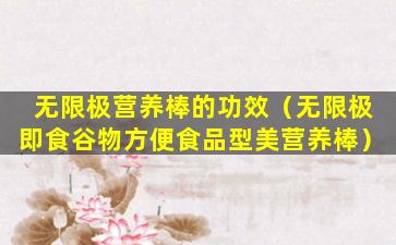 关于您提到的“无限极即食谷物方便食品型美营养棒”,这可能是无限极推出的一款即食谷物产品,旨在提供便捷的营养补充。这类产品通常设计为方便携带和快速食用的形式,适合忙碌的生活方式或作为户外活动的能量补充。