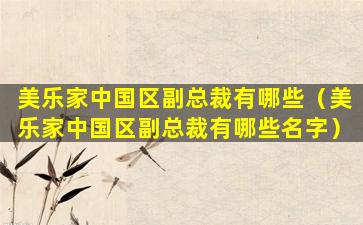 截至我知识更新的时间点(2023年),美乐家(Melaleuca)是一家总部位于美国的健康和家居产品公司,它在中国也有业务。美乐家中国区的管理层可能会随着时间而变化,因此具体的副总裁名单可能会有所不同。