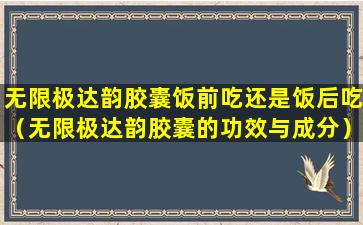 无限极达韵胶囊是一种保健品,其服用时间通常建议在饭后,因为饭后服用可以减少对胃的刺激,同时也有助于提高药物的吸收率。但是,具体的服用时间还是应该根据产品说明书或者医生的建议来确定。