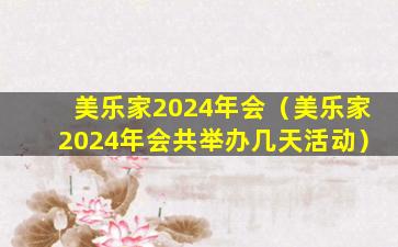 如果您想获取关于“美乐家2024年会”的最新信息,建议您直接访问美乐家的官方网站或联系当地的美乐家代表以获取最新消息和详细安排。由于会议的具体细节(如日期、地点、议程等)通常会在接近会议日期时公布,因此请密切关注相关渠道的更新。