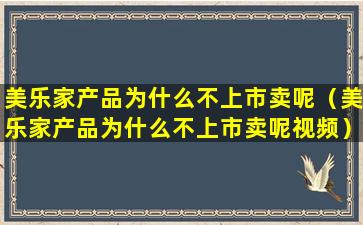 关于“美乐家产品为什么不上市卖呢视频”,这可能是指网络上关于美乐家销售模式的解释或讨论视频。这些视频可能会详细解释美乐家的销售策略和为什么选择直销模式,以及这种模式对消费者和公司的潜在好处。如果你对美乐家的销售模式感兴趣,可以搜索相关的视频内容来了解更多信息。