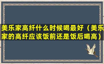 美乐家高纤是一种膳食纤维补充产品,通常用于帮助改善消化系统的健康,增加饱腹感,以及促进肠道蠕动。关于何时饮用美乐家高纤,以下是一些建议: