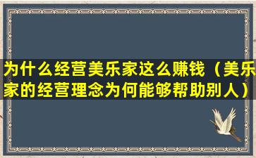 关于“美乐家为什么是符合趋势的生意”,可以从以下几个方面来分析: