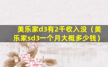 美乐家(Melaleuca)是一家美国的直销公司,主要销售健康、个人护理、家庭清洁和营养补充品等产品。关于美乐家d3的收入,这里可能存在误解,因为“d3”并不是一个标准的收入等级或职位名称。通常,直销公司的收入是根据个人的销售业绩和团队发展情况来决定的。