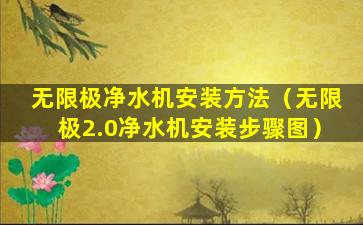 请注意,不同型号的无限极净水机可能会有不同的安装步骤和要求,因此在安装前应详细阅读产品附带的安装说明书,并按照说明书上的指导进行操作。如果遇到任何问题,可以联系无限极的客服或专业安装人员寻求帮助。