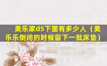 由于美乐家的直销结构是基于个人网络的,每个直销商的下线人数会根据其个人业绩和招募能力而有所不同。因此,没有一个固定的数字可以回答“d5下面有多少人”的问题,除非提供具体的直销商信息。