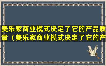 美乐家(Melaleuca)是一家美国的直销公司,主要销售健康、个人护理、家庭清洁和营养补充品等产品。关于“美乐家商业模式决定了它的产品质量”的说法,我们需要从几个方面来分析: