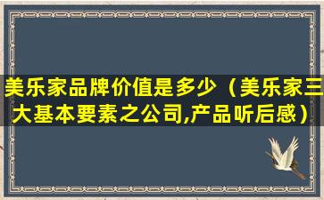 如果您需要了解美乐家的品牌价值,建议直接联系美乐家公司或查阅最新的市场研究报告,以获取可能的第三方评估或公司自行公布的相关信息。请注意,这些信息可能会随着时间和市场条件的变化而变化。