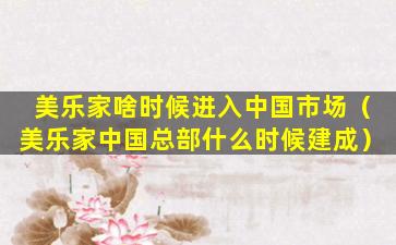 美乐家进入中国市场的时间是在1998年。当时,美乐家在中国上海设立了代表处,并开始在中国市场推广其产品。随着业务的扩展,美乐家在中国逐渐建立了完善的销售网络和客户服务体系。