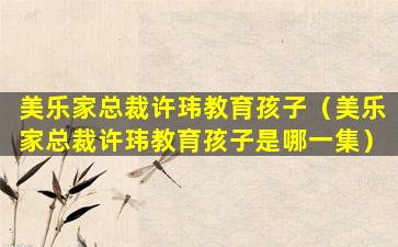 许玮是美乐家公司的创始人和CEO,他可能在一些访谈、演讲或公司活动中分享过关于家庭、教育或领导力的观点,但没有特定的“一集”专门讲述他如何教育孩子。如果您有兴趣了解更多关于许玮或美乐家的信息,建议直接访问美乐家的官方网站或查找相关的商业新闻报道。
