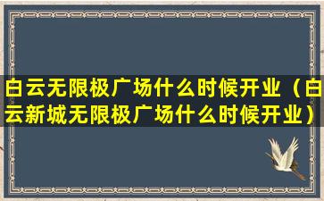 截至我的知识更新日期(2023年),白云无限极广场是位于中国广州市白云区的一个商业综合体项目。关于其开业时间,由于我的数据截止日期,我无法提供最新的信息。通常,商业综合体的开业时间会受到多种因素的影响,包括建设进度、招商情况、市场环境等。