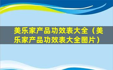 关于“美乐家产品功效表大全最新”,我无法提供具体的产品功效表,因为这需要根据美乐家公司的最新产品信息来更新。美乐家(Melaleuca)是一家美国的健康和保健产品公司,提供各种个人护理、家庭清洁、营养补充品等产品。