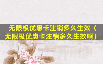 无限极优惠卡的注销生效时间可能会根据无限极公司的具体政策而有所不同。通常情况下,一旦您提交了注销申请,公司会在一定的工作日内处理您的请求。这个处理时间可能从几个工作日到几周不等,具体取决于公司的内部流程和政策。