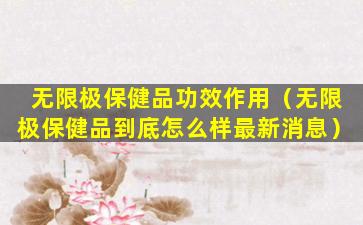 无限极是中国的一家保健品公司,其产品线涵盖了多种保健品,包括但不限于保健食品、个人护理品和家居用品。无限极的产品通常宣称能够帮助调节身体机能、增强免疫力、改善健康状况等。对于保健品的任何功效和副作用,都需要基于科学研究和临床试验的结果来评估。