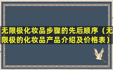 请注意,每个人的肌肤状况和需求不同,因此在使用无限极化妆品时,应根据自己的肤质和产品说明来调整使用步骤和产品。如果有特殊肌肤问题,建议咨询专业的皮肤科医生或美容顾问。