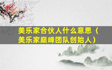 "美乐家合伙人"可能是指与美乐家公司(Melaleuca, Inc.)合作的一种商业模式。美乐家是一家总部位于美国爱达荷州的公司,主要通过多层次营销(MLM)或网络营销的方式销售健康、个人护理、家庭清洁等产品。