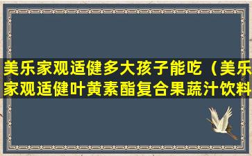 美乐家观适健是一种营养补充品,通常用于帮助改善视力健康。关于多大孩子能吃,这通常取决于产品的具体说明和建议。在中国,所有的营养补充品和药品都必须遵循国家食品药品监督管理局(NMPA)的规定和指导。
