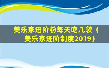 美乐家(Meilejia)是一个品牌,它提供多种健康产品,包括营养补充品。关于“美乐家进阶粉”每天应该吃几袋,这个问题的答案取决于具体产品的说明和推荐。不同的产品可能有不同的建议用量。
