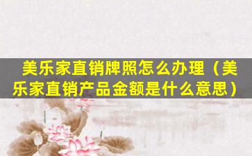在中国,直销牌照的申请和办理是由国家市场监督管理总局负责的。如果您想了解美乐家(假设这是一个直销公司)如何申请直销牌照,以下是一般的步骤和要求: