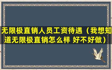 由于具体的工资待遇会根据个人情况和公司政策有所不同,如果您想了解无限极直销人员的具体工资待遇,建议直接咨询无限极公司或其现有的直销人员获取最准确的信息。