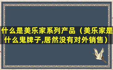 关于您提到的“居然没有对外销售”,这可能是一个误解。美乐家的产品在全球范围内都有销售,包括线上电商平台和线下实体店。如果您在某个地区或渠道找不到美乐家的产品,可能是因为当地的销售策略、分销渠道或者产品线有所不同。
