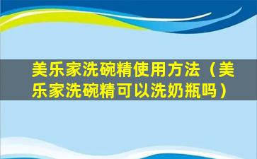 虽然美乐家洗碗精可能能够清洁奶瓶,但为了婴儿的安全和健康,最好使用专门的婴儿奶瓶清洁剂。