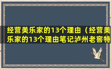 关于“经营美乐家的13个理由”的笔记,这通常是指美乐家(Melaleuca)这个品牌的直销或会员制商业模式的一些优势或特点。美乐家是一家美国的健康产品公司,提供各种个人护理、家庭清洁、营养补充品等产品。以下是一些可能的理由,但请注意,这些理由是基于一般直销公司的特点,并不特指美乐家: