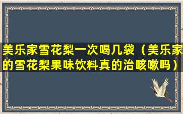 美乐家雪花梨是一种以雪花梨为主要原料的饮品,通常用于清热润肺、生津止渴。关于一次喝几袋的问题,这取决于产品的具体说明和个人的身体状况。