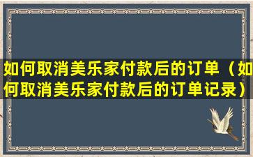 关于您提到的“取消美乐家付款后的订单”的问题,我们无法提供具体的操作步骤,因为这涉及到个人财务和隐私信息。我们建议您直接联系美乐家的客服,他们会根据公司的政策和流程为您提供专业的帮助。