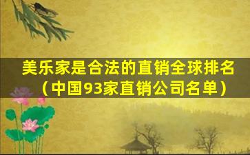 关于“合法的直销全球排名”,直销公司的排名通常会根据不同的标准和来源而有所不同。一些常见的排名标准包括销售额、市场份额、增长速度、品牌影响力等。美乐家在全球直销行业中确实是一个知名的品牌,并且在多个直销行业排名中通常位于前列。