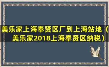 如果您需要了解美乐家在上海奉贤区的纳税情况,您可以尝试以下几种方法: