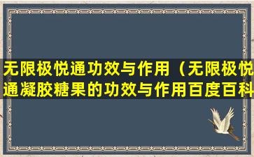 关于“无限极悦通凝胶糖果”的功效与作用,我无法提供具体的信息,因为这可能是一个特定品牌的产品,而我的知识库中没有包含该产品的详细信息。通常,这类产品可能会宣称具有促进健康、增强免疫力或其他健康益处,但这些声明需要基于科学研究和临床试验的支持。