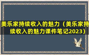 关于“美乐家持续收入的魅力课件笔记2023”,我无法提供具体的课件内容,因为这可能涉及到版权问题。不过,我可以提供一些关于如何理解和实现持续收入的一般性建议: