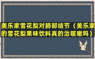 关于“美乐家雪花梨对肺部结节”的说法,目前没有科学研究或医学证据表明特定的食物或产品能够直接治疗或影响肺部结节的形成或发展。肺部结节是指肺部出现的小于3厘米的圆形或椭圆形影像,它们可能是良性的,也可能是恶性的。
