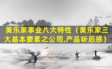 美乐家(Melaleuca)是一家美国的直销公司,主要销售健康、个人护理、家庭清洁和营养补充品等产品。美乐家事业通常被认为具有以下八大特性: