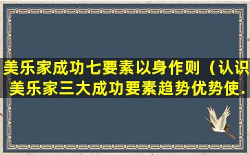 1. 以身作则:这是七要素中的一个关键原则,意味着领导者需要通过自己的行为来树立榜样。在美乐家的语境中,这意味着会员应该通过自己的行动来展示公司的价值观和业务实践,包括使用产品、遵守公司的道德准则和积极参与业务活动。