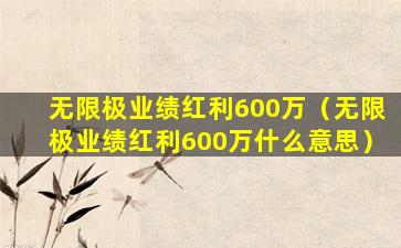 关于“无限极业绩红利600万”的说法,首先需要明确的是,无限极是一家中国的直销公司,主要从事健康产品的销售。直销公司的业绩红利通常是指根据销售业绩给予销售人员的奖励或分红。